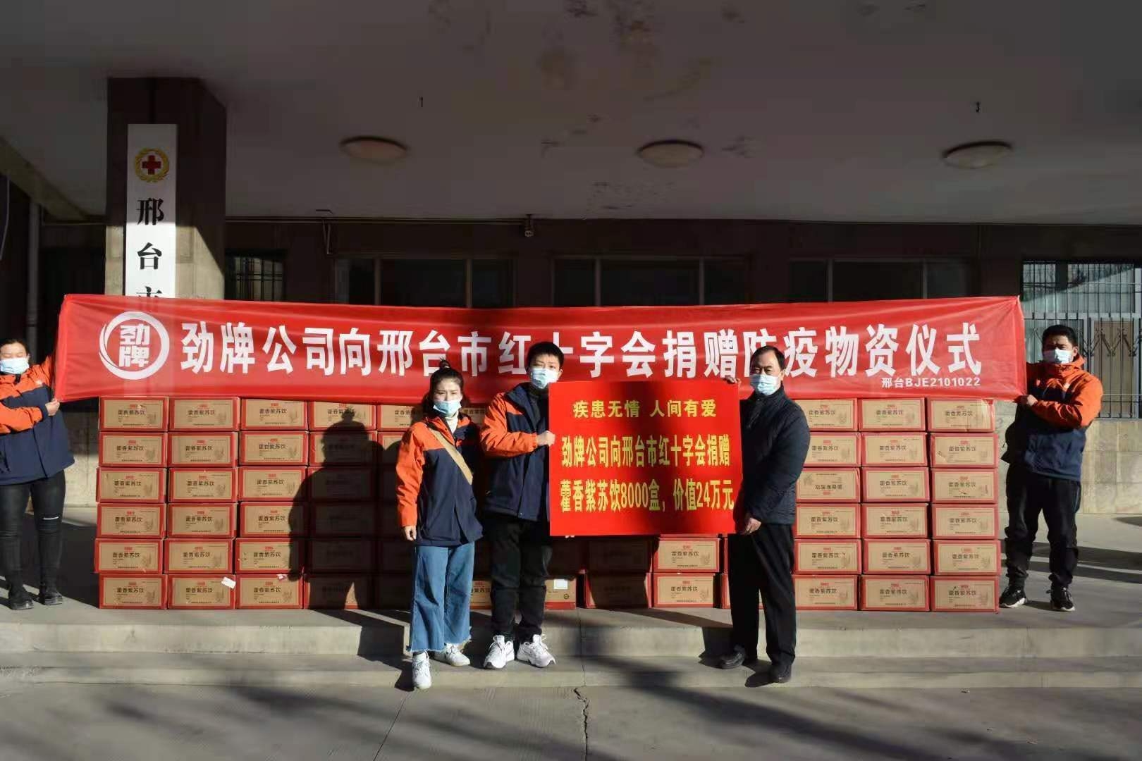 昨日,河北省邢台市收到了劲牌持正堂委托邢台红十字会捐赠的8000盒,总价值达24万元的藿香紫苏饮。